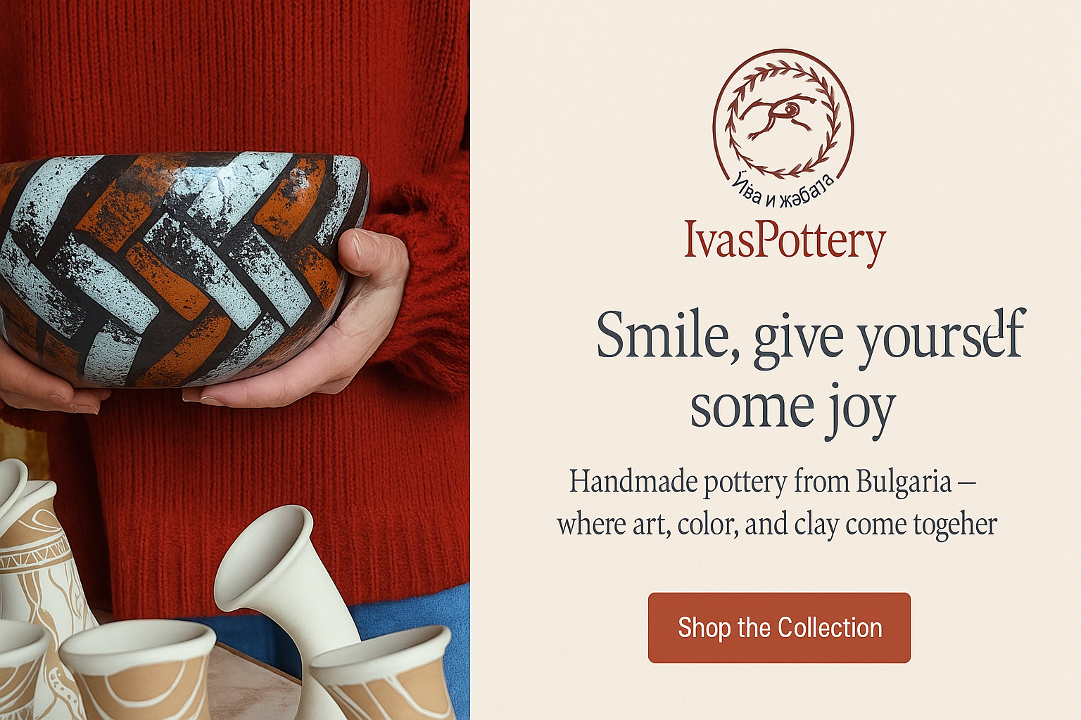 Handcrafted pottery from Bulgaria – where art, color, and clay come together. -Iva Tsarkova, artist & maker