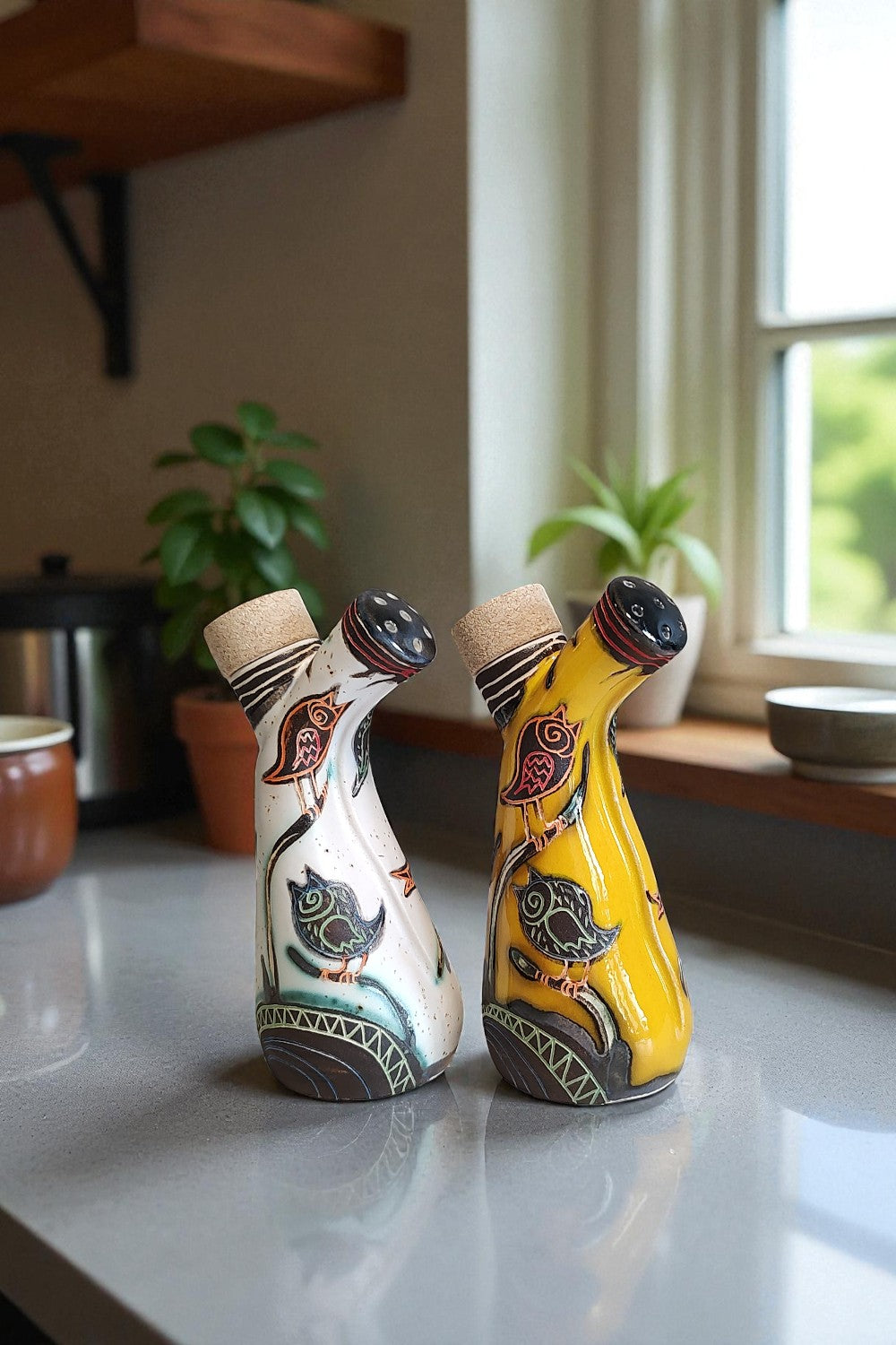 Two little pieces of everyday art — crafted by hand from fine Italian clay.
